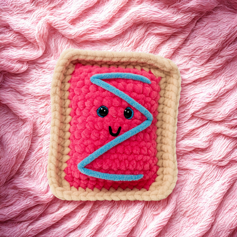 I lovingly handcraft each Strawberry Snuggle Tart using vibrant pink yarn that perfectly captures the sweet, juicy essence of fresh strawberries. I carefully select sparkly safety eyes that give each one their own adorable personality, and I embroider sweet smiles that are guaranteed to brighten your day. The signature turquoise blue accent stitching creates that classic breakfast pastry look we all know and love.