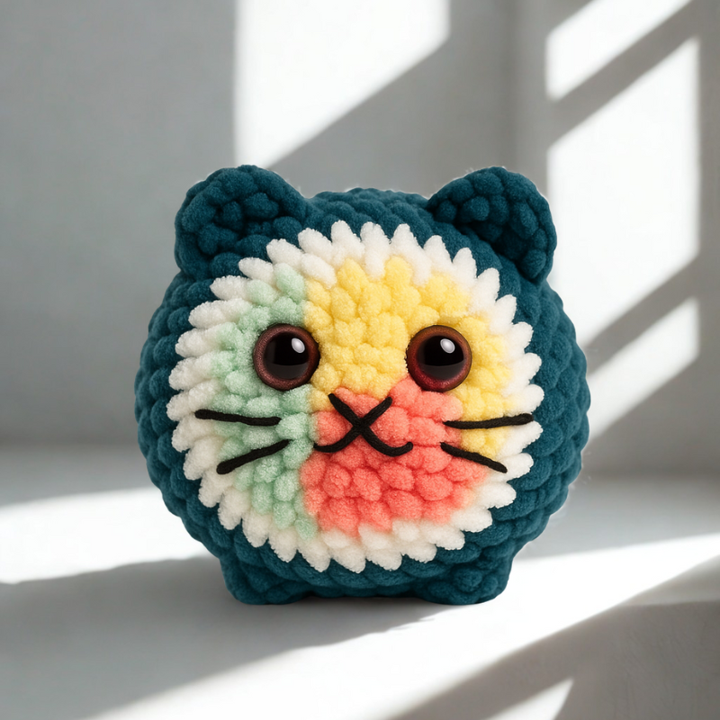 Each Sushi Cat takes me hours to complete using my therapeutic crocheting process. I carefully select warm brown safety eyes that give this culinary kitty its own unique personality, and I embroider precise whiskers and features that make it irresistibly cute. The circular sushi design with cat ears creates the perfect blend of food artistry and feline charm.